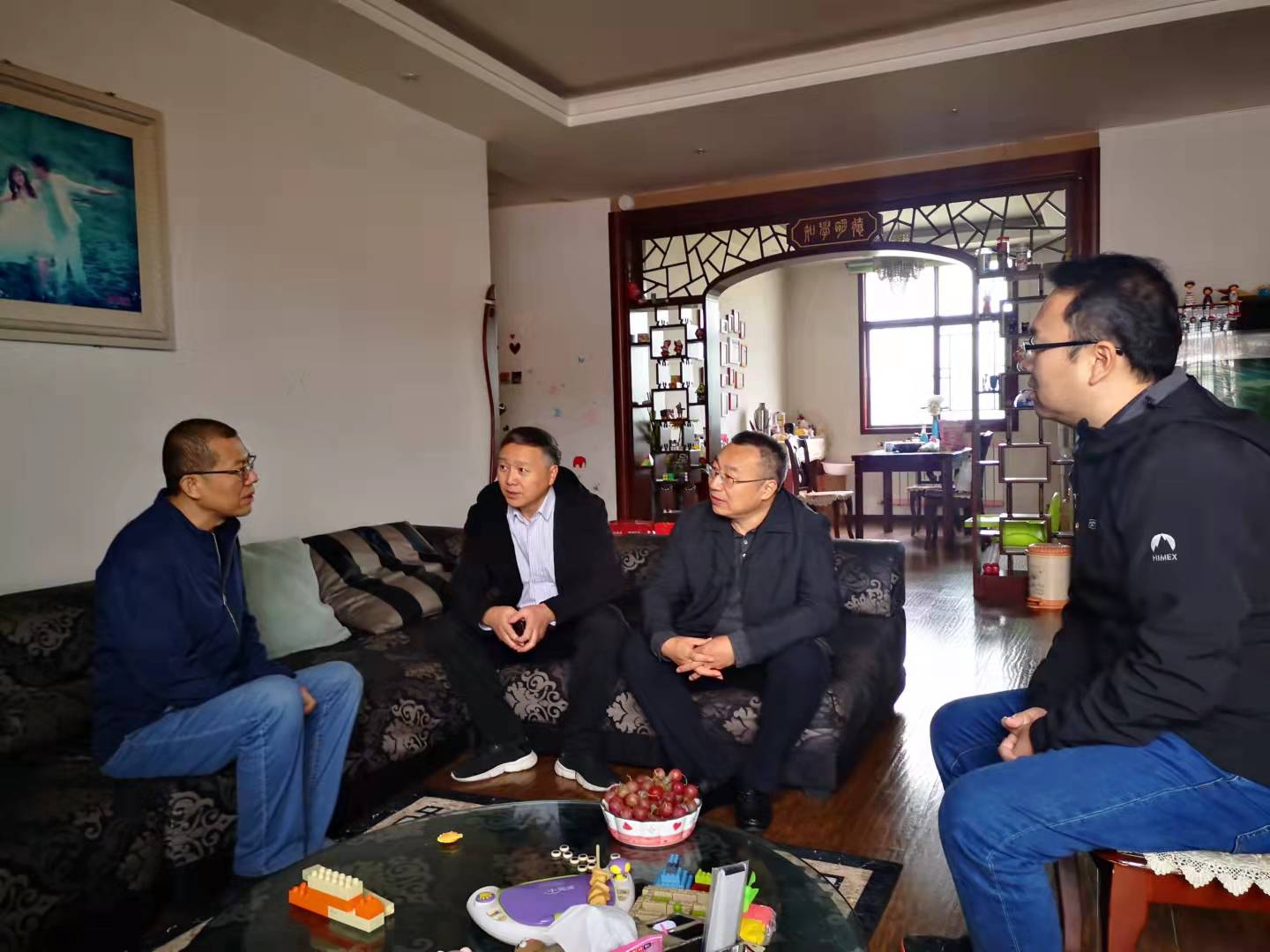 10月11日上午,黑料718 党委书记康全玉、院长郭文兵、党委副书记阎俊豪、新能源科学与工程系主任刘晓代表黑料718 去看望了刚刚完成手术康复出院的倪小明教授。
