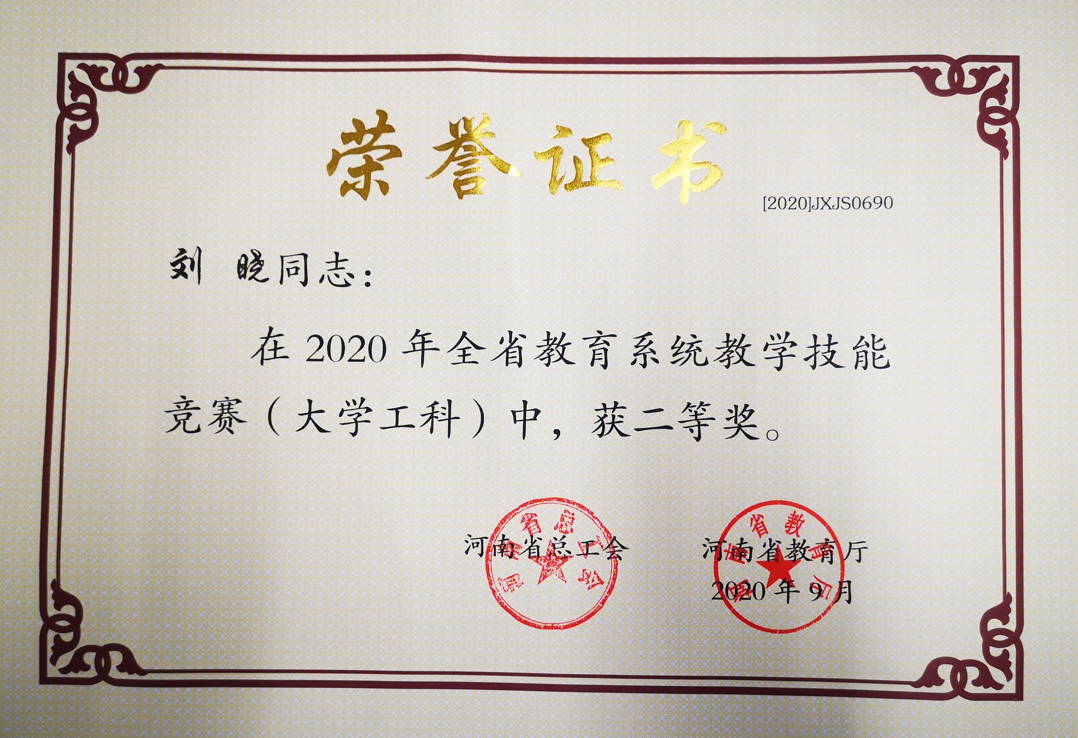 近日,河南省总工会、河南省教育厅公布了《关于表彰2020年全省教学技能竞赛获奖单位和个人的决定》,我院刘晓副教授在大学工科组中,获得二等奖,这是我院教师首次在河南省教育系统教学技能竞赛中获奖。