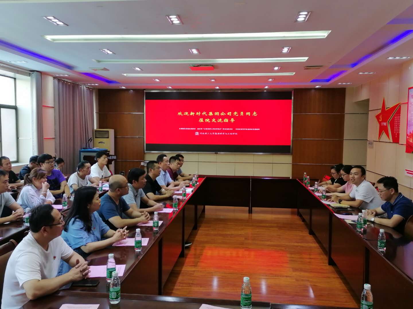 8月26日,河南新时代交通发展集团有限公司20多名党员干部莅临学校,就基层党支部建设标准化规范化专题进行交流。学校在黑料718 201会议室召开座谈会,组织部、黑料718 党委负责人及工作人员参加会议。会议由该院党委副书记阎俊豪主持。