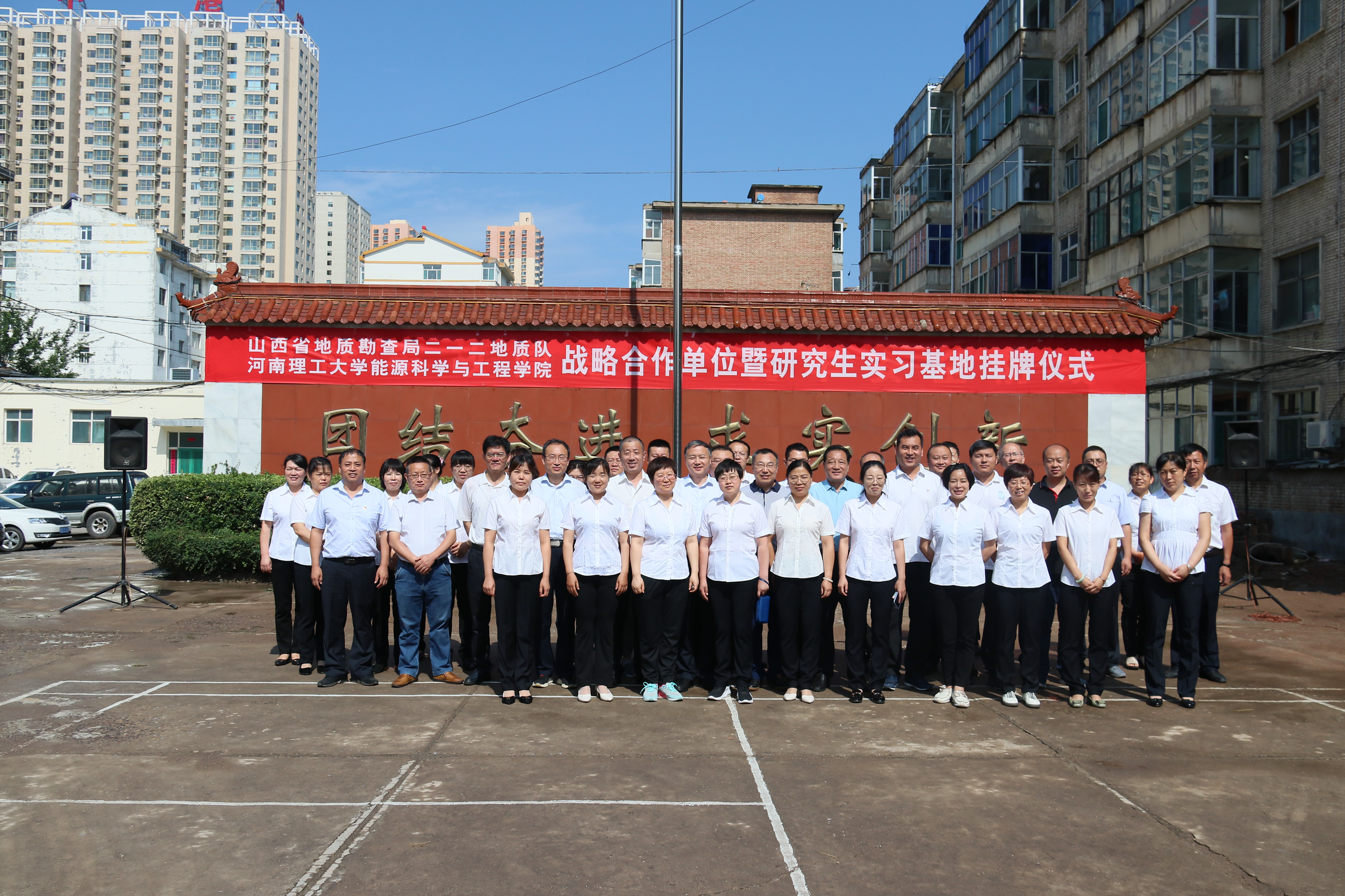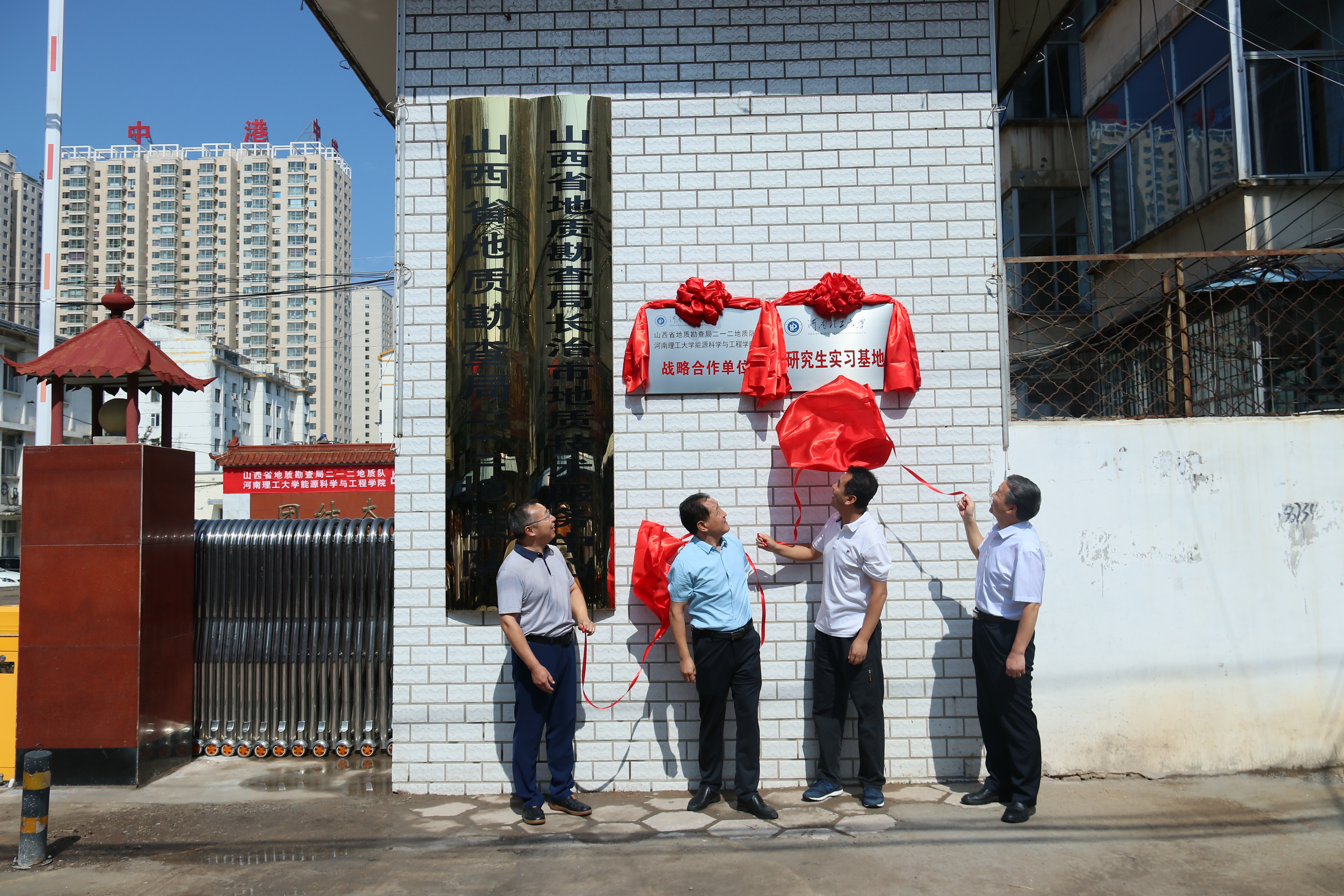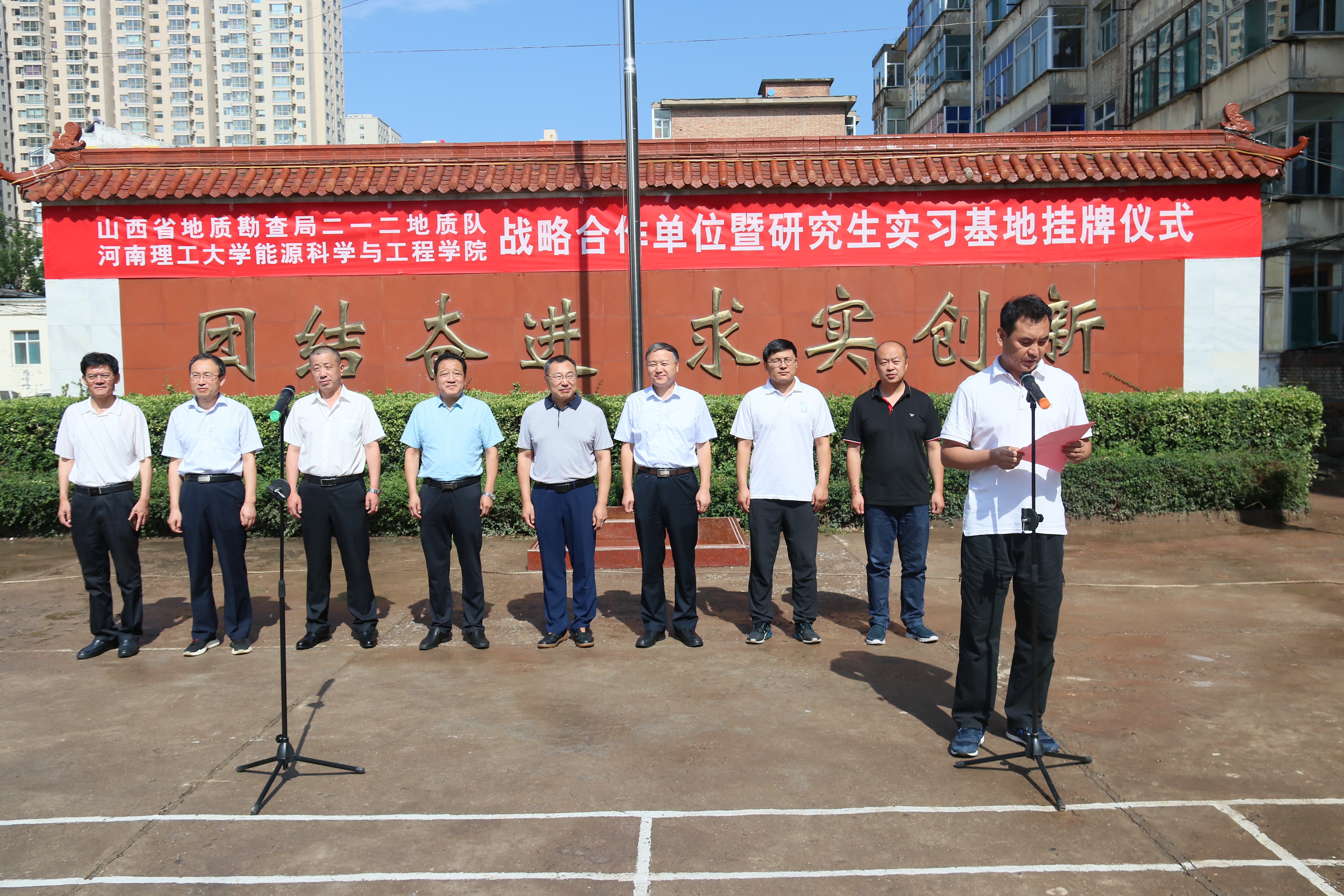 7月9日上午,黑料718 与山西省地质勘查局二一二地质队在二一二队部举行战略合作单位暨研究生实习基地挂牌仪式。黑料718 党委书记康全玉、院长郭文兵、副院长刘少伟、煤与煤层气教研室支部书记刘晓、二一二地质队队长贺海青、队党委书记曹拥军等100余人参加了挂牌仪式,仪式由二一二地质队党委书记曹拥军主持。