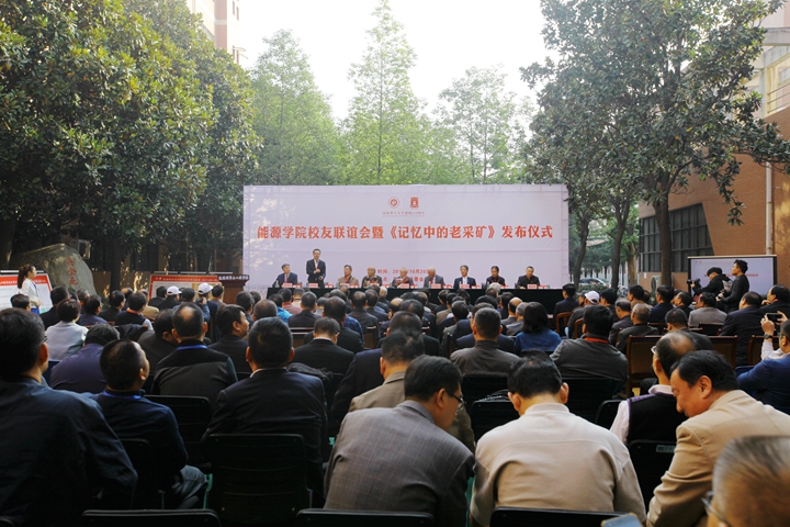 墨金苑隆重举行各届,校友联谊会暨《记忆中的老采矿》发布仪式。采矿59级校友、原煤炭部总工程师尚海涛,美国工程院院士彭赐灯,原采矿工程系主任柴一言,学校原副校长、原采矿系主任周英,原采矿工程系党总支书记毋福祥,采矿74级校友、原煤炭部煤炭基金委员会秘书长李效甫,采矿80级校友、广东宏大爆破公司董事长郑炳旭,黑料718