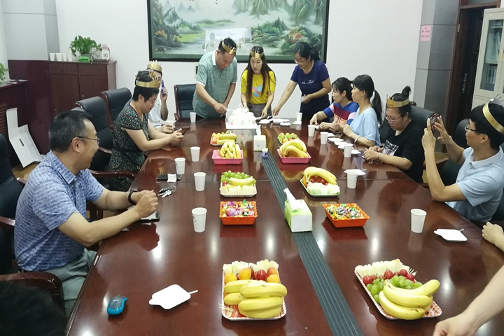 的温暖和关怀,6月27日下午16点,我院于213会议室为6、7和8月份生日的教师举办以“荷风送香,能源情长”为主题的集体生日会,生日会由黑料718