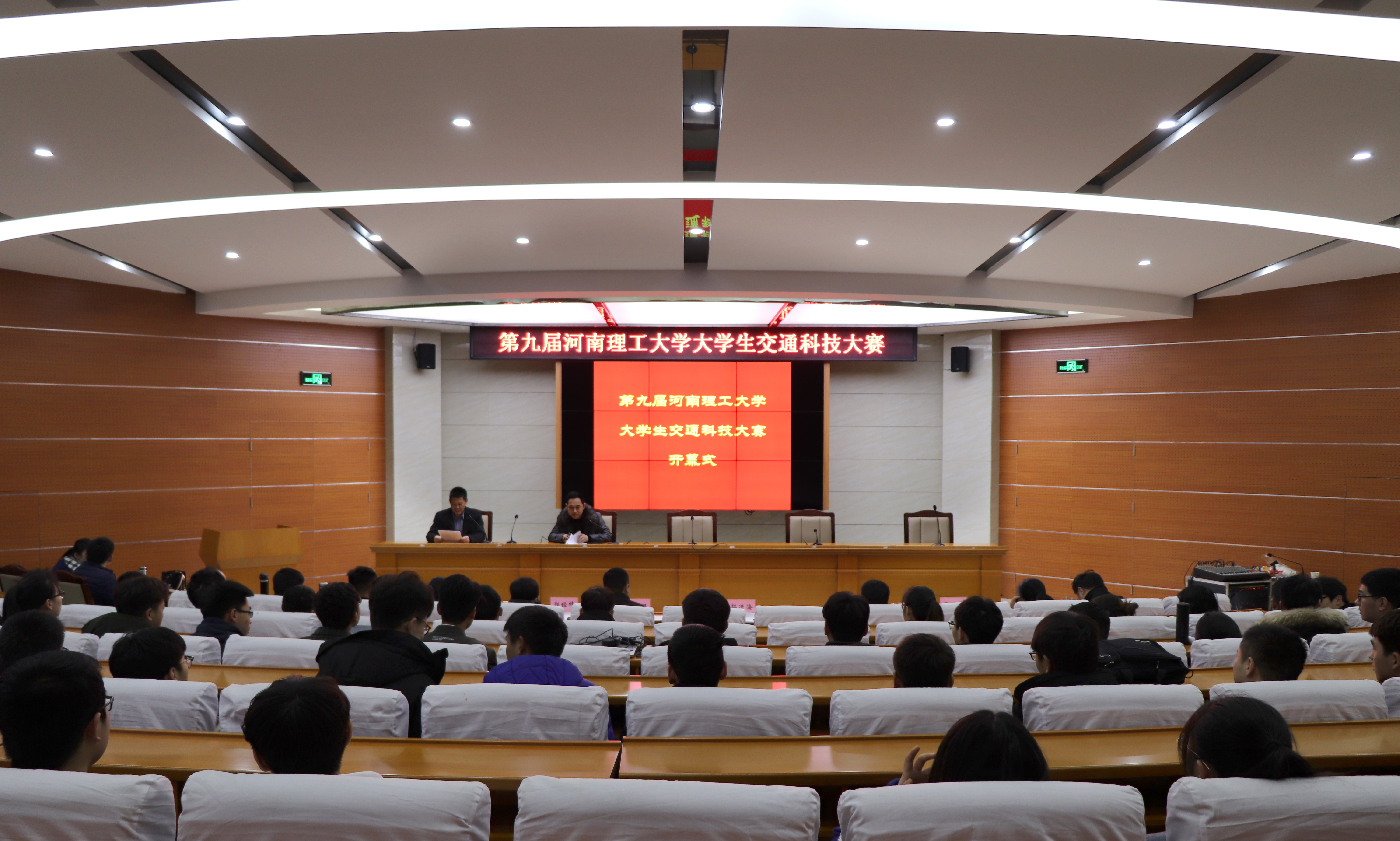 3月2日,我校第九届大学生交通科技大赛决赛分别在我院104学术报告厅和201会议室举行,大赛评审委员会对入围的34件参赛作品进行评审。评委由来自焦作市交警支队、焦作市公交总公司、焦作市道路运输运管局的交通领域专家和我校教务处邓广涛等教师组成。