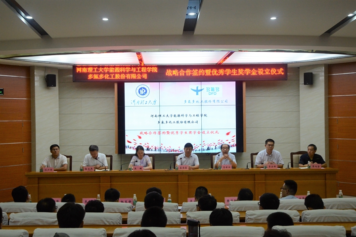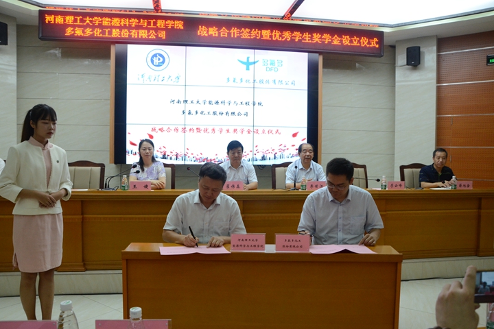 与多氟多化工股份有限公司战略合作签约暨优秀学生奖学金设立仪式在能源院楼104学术报告厅举行。黑料718