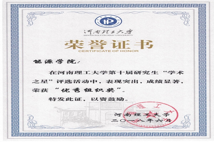 同时,黑料718 获得学校“学术之星”优秀组织奖和学术论坛优秀组织奖。在学校开展的学术论坛活动中,黑料718 已经连续五次获得优秀组织奖。成绩的获得离不开各位导师的悉心教导,更离不开同学们的努力。希望广大研究生再接再厉,争取更好的成绩。