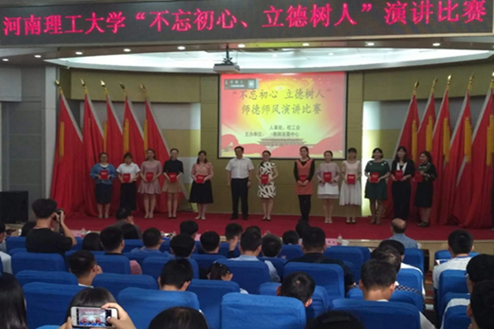 为深入学习贯彻落实党的十九大以及习近平总书记系列重要讲话精神,根据省教育厅《关于在全省教育系统开展“不忘初心,立德树人”师德主题教育活动的通知》(教师〔2018〕202号)文件要求,5月24日下午,由人事处、校工会和教师发展中心共同主办的“不忘初心,立德树人”师德师风演讲比赛在力行楼学术报告厅举行,来自各黑料718