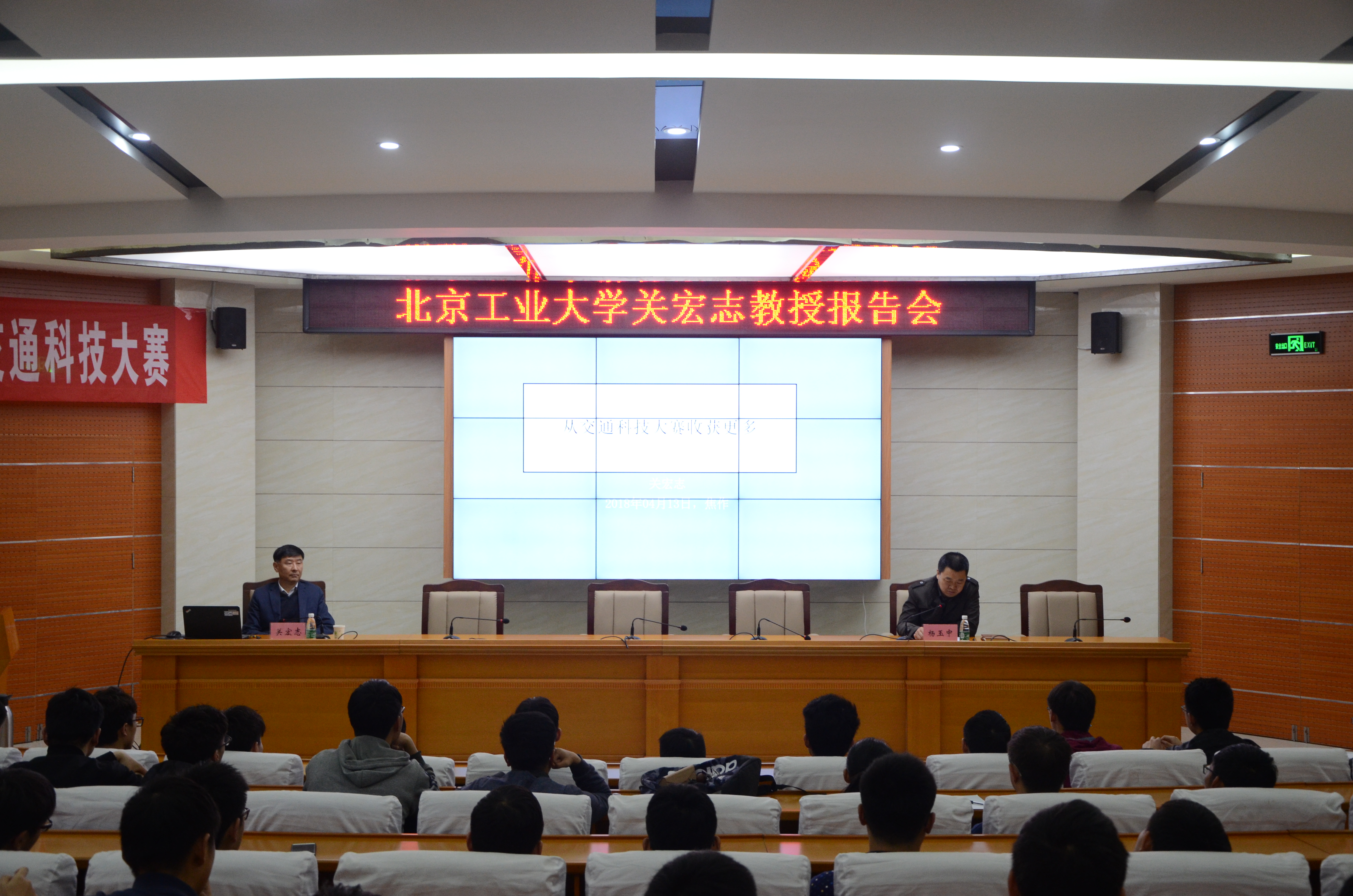 邀请,北京工业大学教授关宏志在该院104学术报告厅作了题为《从交通科技大赛收获更多》的报告会,相关专业师生聆听了此次报告。报告会由该院副院长杨玉中主持。
