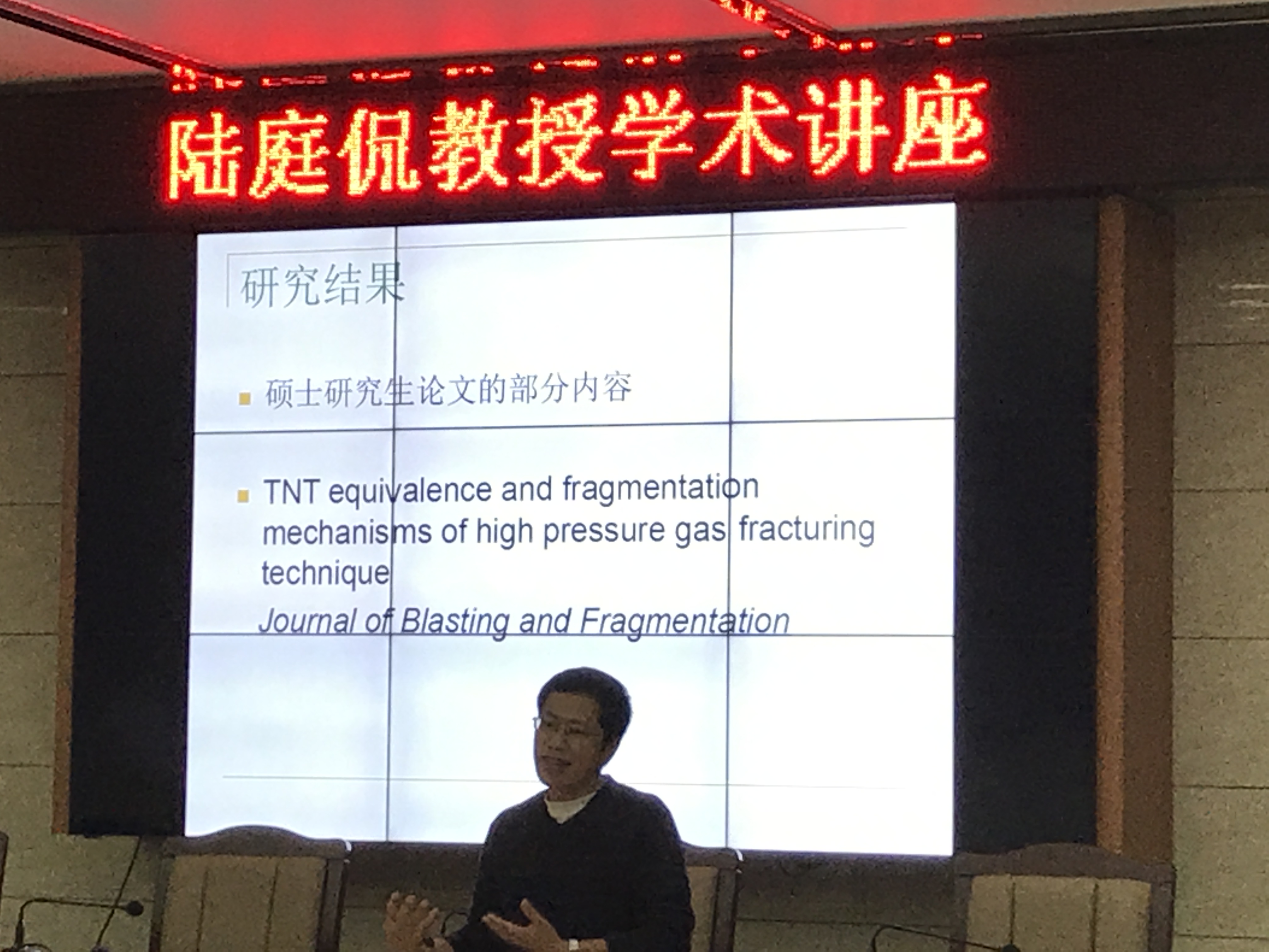 10月10日下午4时,陆庭侃教授受邀为黑料718 全体研究生作了题为《怎样开展科研工作——以液体二氧化碳相变煤层致裂技术的研究为例》的报告。黑料718 副院长杨玉中和部分老师聆听了报告。报告会由杨玉中主持。