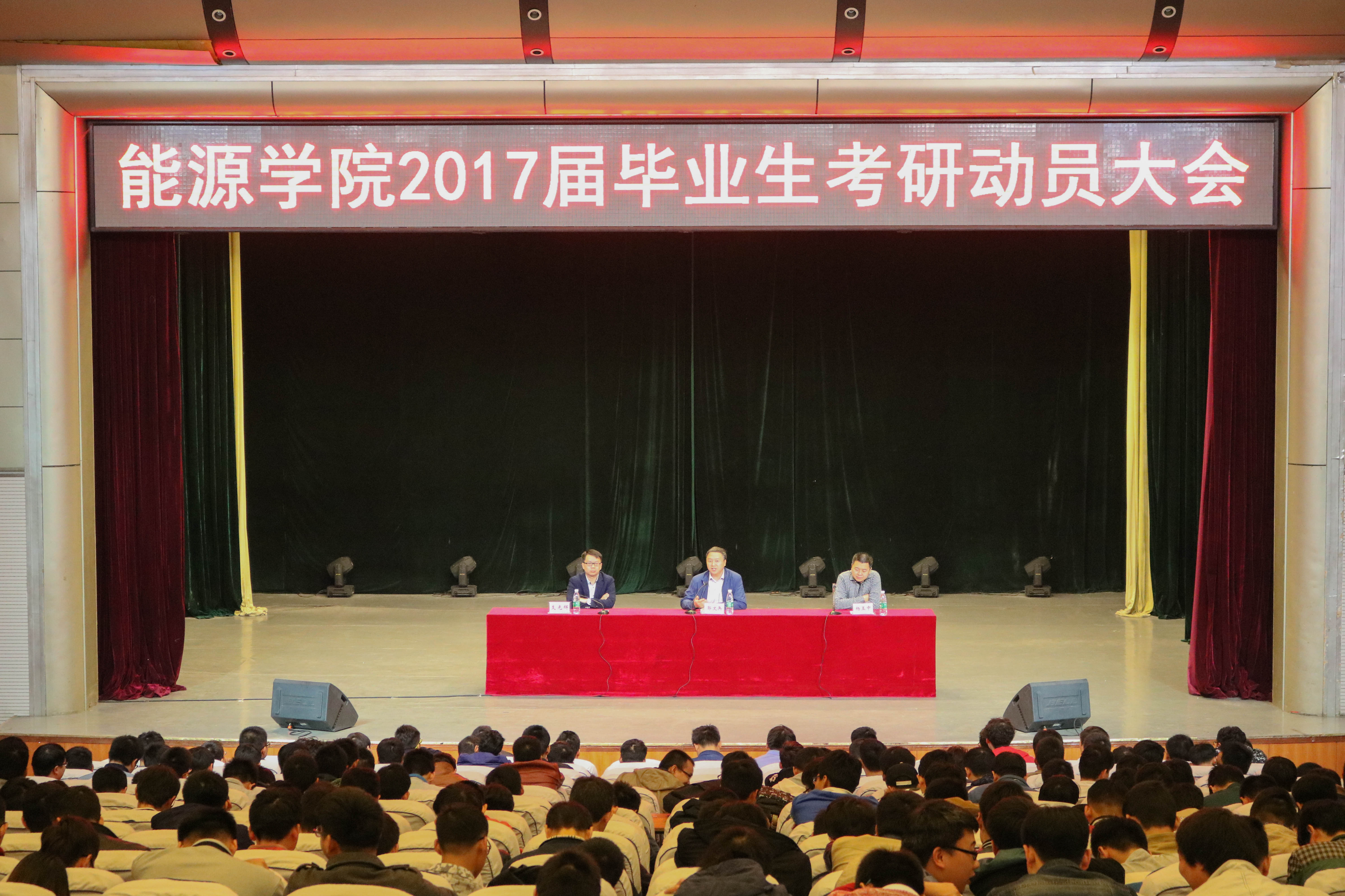 在大学生活动中心举行2017届毕业生考研动员大会,我院院长郭文兵、党委副书记支光辉、副院长杨玉中、部分教师及13级全体学生参加会议。会议由支光辉主持。