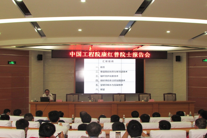 报告会上,康红普简单介绍了煤矿巷道支护技术的重要性与发展历程。他结合自身多年研究经历,从巷道围岩地质力学测试技术、锚杆支护成套技术、破碎煤岩体注浆加固技术与坚硬顶板水力压裂技术四个方面对煤矿巷道围岩控制进行了深入系统的阐述。他指出,巷道支护技术仍有大量工作需要完善,希望在座的专家学者尤其是青年学者刻苦钻研,将煤矿巷道支护技术推向一个新的技术层次。郭文兵充分肯定了康红普院士治学严谨的科研精神和在巷道支护方面取得的卓越成就,并感谢康红普为在座教师、研究生奉献了一场精彩丰富的学术盛宴。最后,他希望在场师生不仅要学习康红普刻苦钻研的精神,更要学会他的严谨、科学的思维方法,以创造性的思维从事科研工作。会后,康红普与相关专家学者进行了探讨交流。