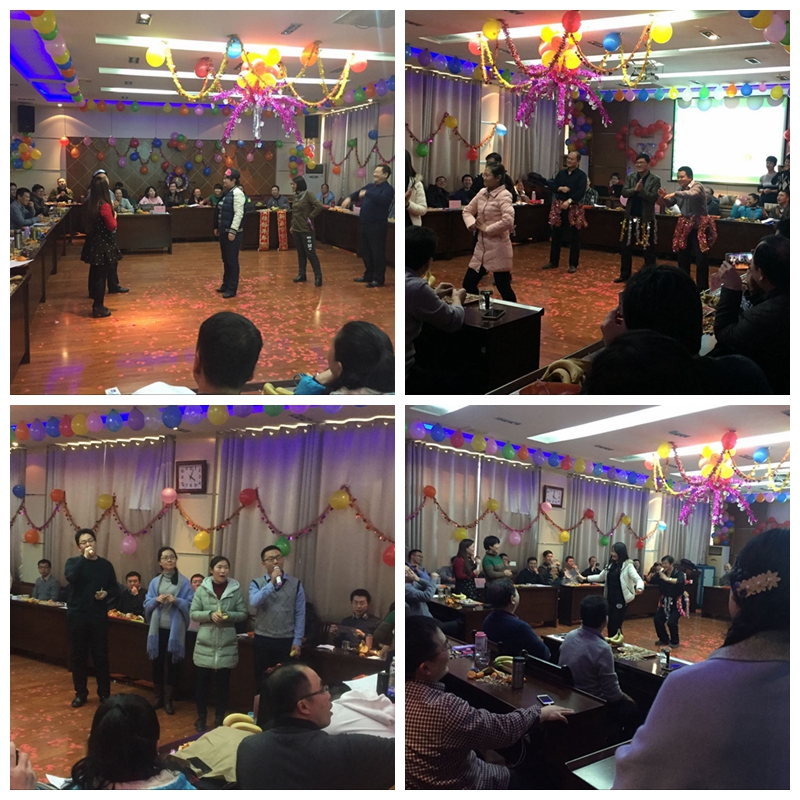 党委会向全体教师表示了诚挚的节日问候和美好祝愿。随后,教职工代表们戴上象征猴年的美猴面具,一人送上一句祝福,茶话会正式拉开帷幕。各个教研室的教职工们以其饱满、积极的精神风貌为大家带来了一连串精彩的表演,表演包括唱歌、舞蹈、朗诵和太极拳展示。段玉玲老师演唱的歌曲《今夜无眠》时而婉约,时而激昂,一个温暖舞台,一曲澎湃语调。伴着优美的乐章,机关办公室带来的舞蹈串烧以轻盈的舞步、律动的音符,迎接新年的到来。史德新老师凭借一首饱含深情而又富有现代化气息的诗朗诵《兰亭序》令大家听得如痴如醉。蔡骞老师演示的太极拳,柔中有刚的姿势、轻灵游动的脚步赢得在座教职工的欢呼和掌声。金穗层涌宕荡,麦浪起伏欢畅,一首《风吹麦浪》将大家带入一个祥和、宁静的世界。茶话会现场,还穿插了游戏环节。茶话会最终在宋红娜的总结词中落幕。