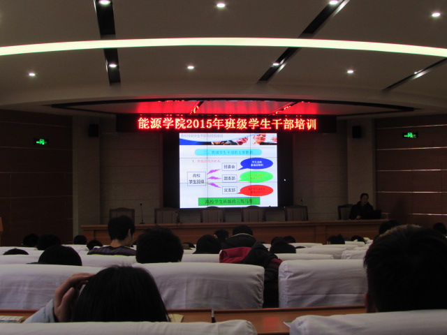 在院楼104学术报告厅举行2015年班级学生干部培训班,2014、2015级116名班级学生干部参加了本次培训。