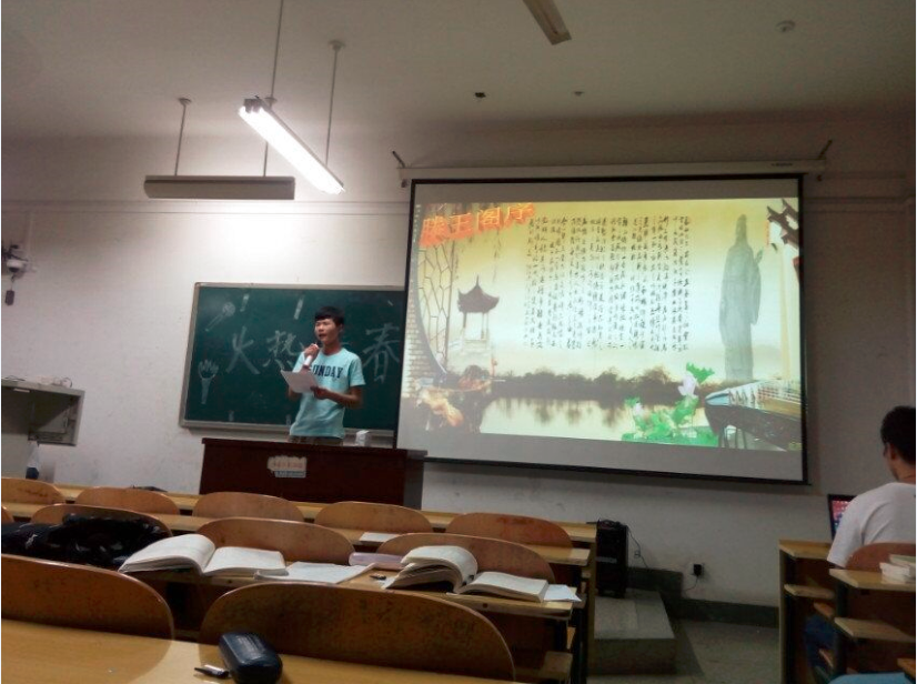这场别出心裁的班会在激昂的《年轻的战场》歌声中拉开了序幕,青春如战场,充满了机遇和挑战。怀念以往,朗诵《向五四青年节敬礼》纪念了轰轰烈烈的五四爱国运动;展望未来,朗诵《滕王阁序》展现了无怨无悔的青春追梦脚步。独唱《鬼迷心窍》唱出了青春中的情丝袅袅。之后,蔡骞老师用陈式太极拳完美阐释了力与美的结合,王凯同学精湛的魔术表演让同学们沉浸在万花筒般的魔幻世界。在笑声不断的猜谜环节,既有增长知识的采矿专业名词,也有趣味横生的看图猜谜。接下来,《将进酒》和《奔跑》唱出了青春热血沸腾的激昂,《生日礼物》和《心如刀割》感怀了青春中些许迷惘的伤感。《真的爱你》表达了对父母的感恩。最后,魏锦平老师带来一首《我的未来不是梦》,激励在座的每位同学要敢于做梦、勇于追梦。班会临近尾声,魏锦平和蔡骞两位老师也对同学们表达了自己的殷切期望和祝福。