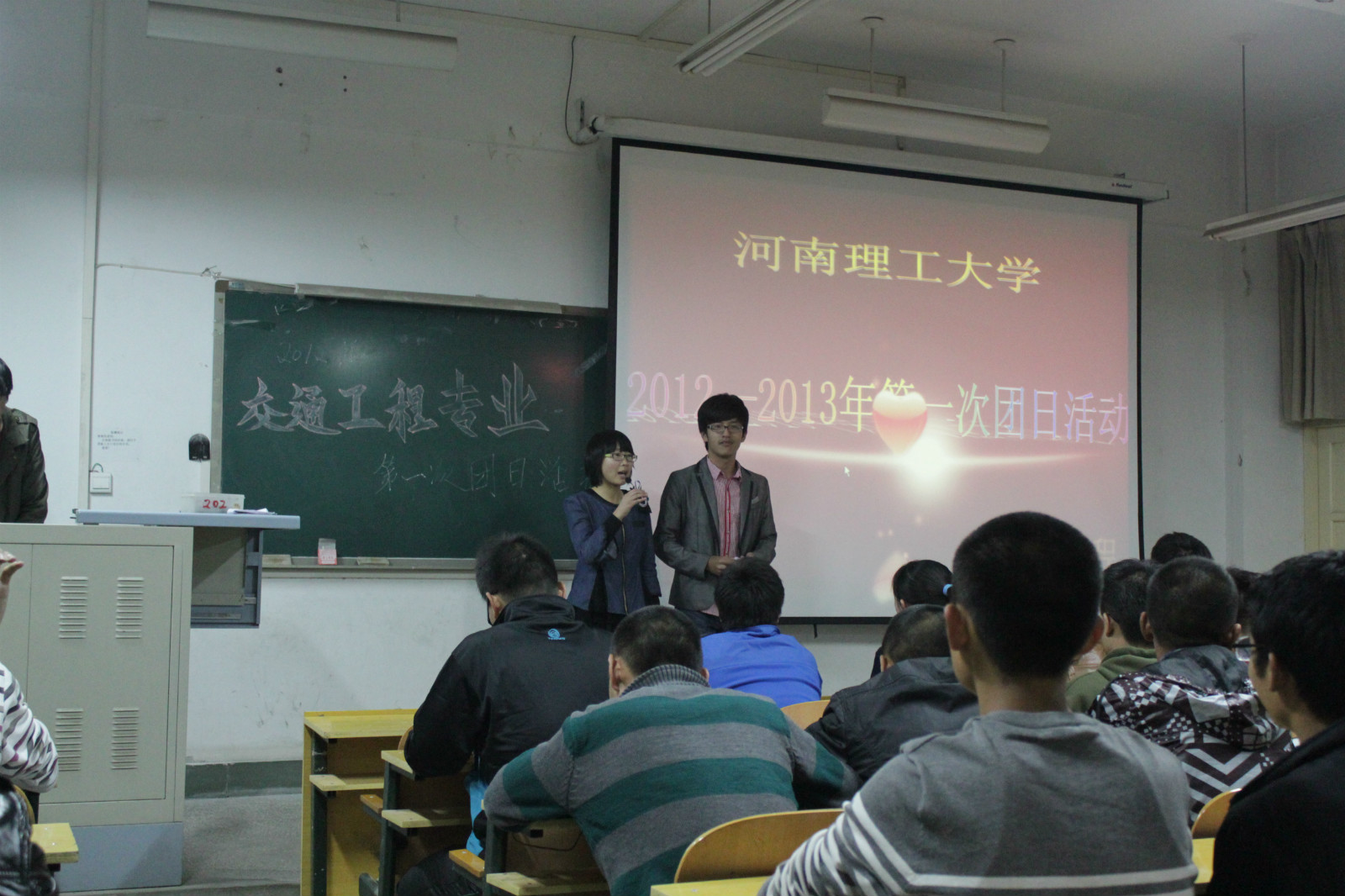 11月1号晚,工业工程团日活动在院楼102教室如期开展,12级辅导员蔡骞、工业1203班班主任兰建义与近百名同学共同参加了此次活动。本次活动以PPT的讲解形式贯穿始终。活动伊始,主持人用充满诗意的主持词宣布本次活动正式开始,紧接着,两位主持人用诙谐幽默的相声带领大家回忆自己难忘的高中生活,一首《那些年,我们一起唱的班歌》勾起了同学们的种种美好的回忆,一首《浮夸》更是引起台下掌声连连。随后,一个关于乔布斯在哈佛大学演讲的简短视频让同学们领悟到上大学的目的与意义,同学们也纷纷自告奋勇畅谈自己对未来的美好设想。最后同学们重温了共产党发展的艰难历史,将活动推向尾声,一首《明天会更好》唱出了同学们对党的美好的祝愿。活动最后,兰老师对同学们鼓励道,你们因大学而精彩,大学因你们而自豪。