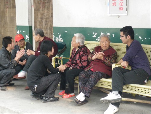 清晨,同学们早早来到敬老院。提热水、扫院子、整理房间……悉心每一处,细心每一事,用心每一点。同学们尽所能给老人们营造良好的居住环境。看,同学们自由组成小组坐在每一位老人身边,亲切地拉起了家常。聊生活、论健康、叙传奇,许多老人在谈到建党90年时不禁回忆过去,结合自身经历给大家讲述党在艰难岁月中的成长历程与战斗中取得的伟大胜利;感谢党今天一系列的惠民政策。“土地改革好,现在农民都不用交公粮了,国家还每亩地给补助,更好!”一位87岁老人高兴地说道。
