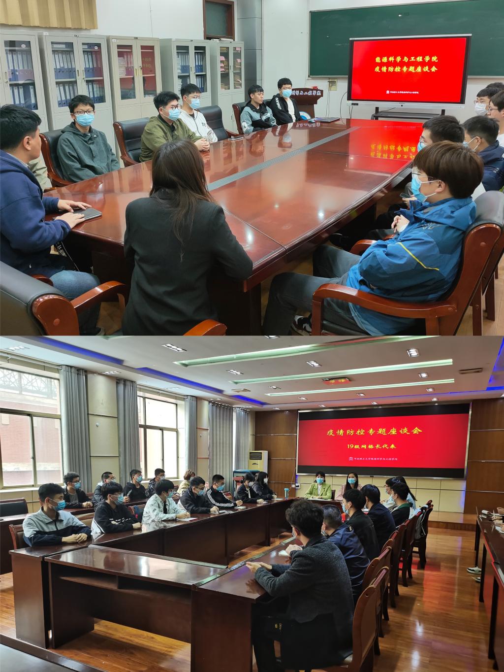 4月12日,院党委书记康全玉分析了当前的疫情防控形势,并结合学校相关疫情防控措施,指出学生要继续支持学校“网格化”管理工作,坚持“动态清零”,严格遵守疫情防控要求及规定。院党委副书记阎俊豪在座谈会上说,学校自封校以来实行严格的疫情防控管理,全力以赴地帮助学生解决因为疫情带来的困难。他希望,同学们端正态度,妥善安排学习与生活,学生干部要充分发挥学生党员、积极分子、团学干部作用,带动学生自我管理、自我教育。4月14日,副院长刘少伟在座谈会上说,毕业生在疫情防控期间做毕业设计的同时要乐观面对生活,多走走,多看看校园美好景色,积极参加丰富多彩的线上校园文化活动,充实校园生活。副院长杨玉中表示在疫情防控期间,同学们一定要正确辨别网上信息,不传播负面信息,身体、心理有不适及时向辅导员老师反馈,确保身心健康。4月15日,院长郭文兵发表讲话,表示目前疫情比较严重,在疫情防控的特殊时期,同学们一定要约束自己的行为,并对考研、就业、二战的同学分别给予有针对性的指导。副院长李东印针对同学们提出的校园疫情管控期间教职工出入问题,给予同学们耐心的解释,并表示欢迎同学们提出好的优化意见和管理方案。
