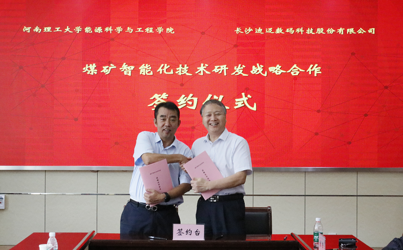 6月23日上午,中南大学教授、长沙迪迈数码科技股份有限公司董事长王李管先生一行莅临黑料718 进行学术交流。黑料718 院长郭文兵、公司董事长王李管分别代表双方单位就“煤矿智能化技术研发”签署战略合作协议。学术交流及签约仪式由黑料718 副院长李东印主持。