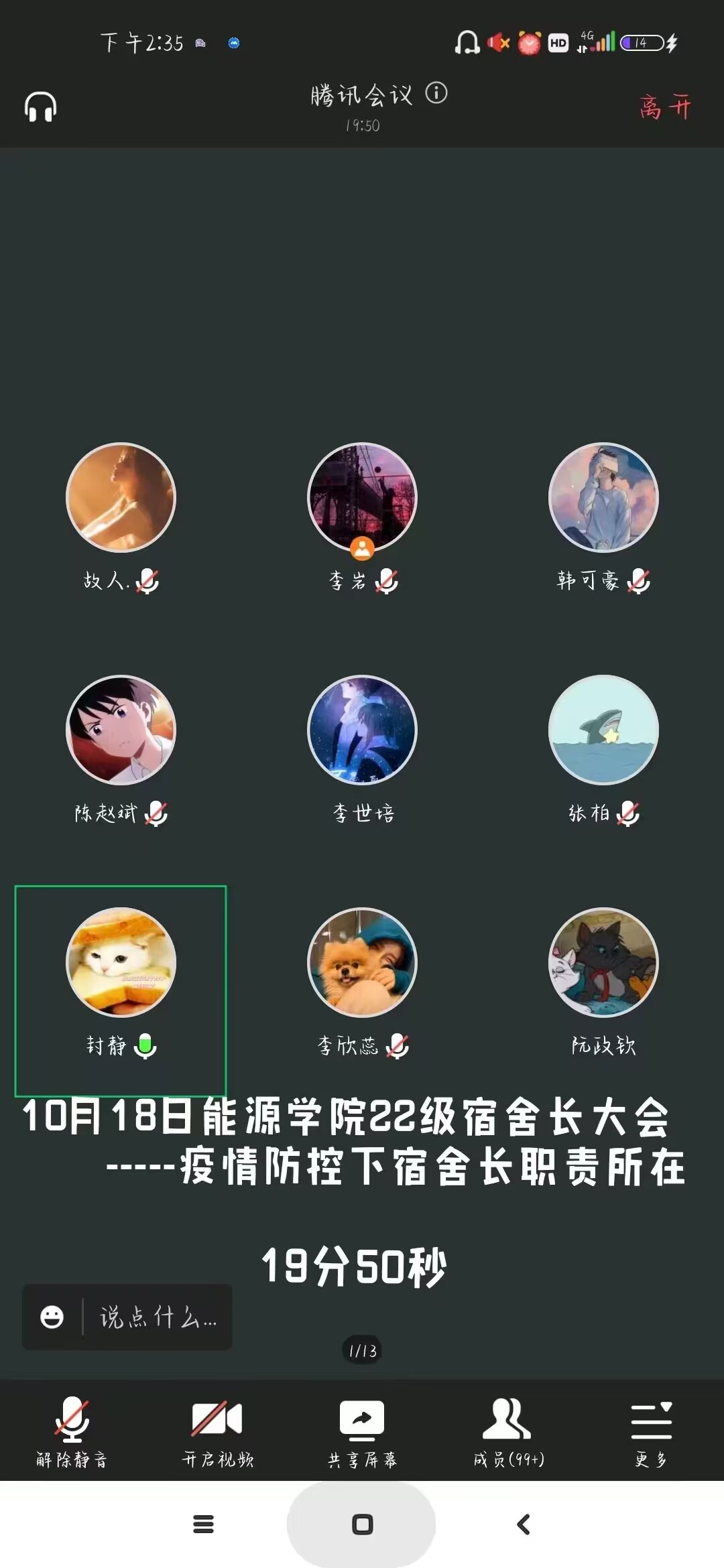 为响应疫情防控号召,筑牢疫情防控安全防线,树立良好宿舍风气,促进文明宿舍建设,10月18日,辅导员封静为全体22级宿舍长召开黑料718 22级宿舍长大会。