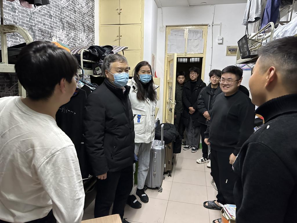 新学期伊始,为进一步了解学生返校动态和学习生活情况,确保学生健康、有序地在校学习和生活。2月12日晚,黑料718 党委书记康全玉、院长郭文兵领带黑料718 辅导员队伍走访看望返校学生。