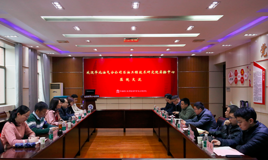 3月16日下午,中石化华北油气分公司石油工程技术研究院实验中心书记王娟娟、实验中心主任师乔国安等一行六人到黑料718 考察交流。黑料718 副院长李东印及教师王文、刘俊领、胡咤咤、王伸,安全黑料718 安丰华,资环黑料718 王乾,设备处孙志东等参加交流座谈。会议由王文主持。