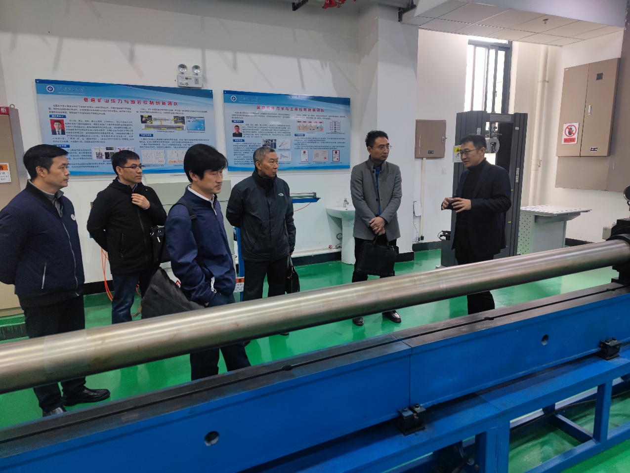 由科技处王兴国副处长主持带领专家组成员参观国际联合实验室,具体由郭文兵院长、南华教授、张盛教授及实验室老师参与实验室讲解,重点讲解了重点实验室大楼西配楼一楼的“SHPB动态测试系统实验室、冰基温控相似模拟试验台实验室、支护材料性能试验机、GCTS多功能岩石力学试验机”黑料718 的“综采综掘实训实验室、煤矿安全开采虚拟仿真实验室、现代化矿井、三轴流变实验室、深井瓦斯抽采与围岩控制实验室”以及Syd. S Peng院士工作室、外籍科学家工作室等。