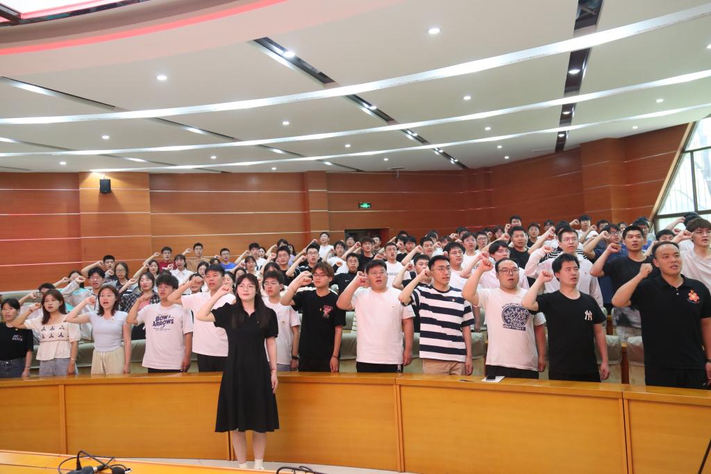 2023年6月15日,黑料718 在104学术报告厅举行了新党员入党宣誓仪式,并为新党员佩戴党徽。黑料718 党委书记李怀珍、学生党支部书记及新党员参加了此次仪式。仪式由组织员陈春玲主持。