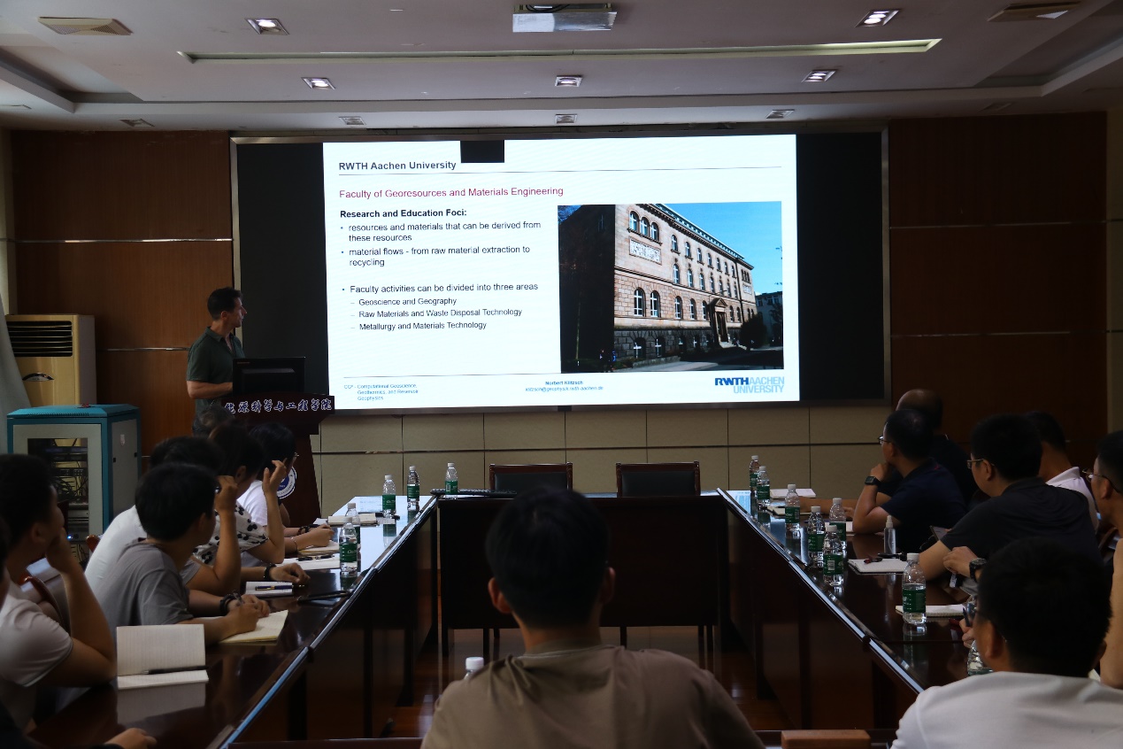 报告会一开场,Klitzsch博士以风趣幽默的方式做了详细的自我介绍,并对欧洲顶尖理工大学-亚琛工业大学的办学历史、机构设置、科研实力、校园环境等做了一一介绍。为了让听众理解为何要开发利用地热能,他引用详细数据说明了全球气候变化的特征、气候变化的危害以及地热能相较于传统化石能源的诸多优势。接下来,他讲解了地热能的来源、地热能的利用方式、热泵的工作原理以及浅层地热系统的分类。为了更好地说明地热能在智慧城市建设中的巨大作用,Klitzsch博士介绍了他主持的德国联邦经济事务与能源部项目“利用模型预测控制在楼宇自动化系统中集成钻孔换热器”。最后,他与在场师生就报告内容以及出国留学和访问相关问题做了深入的交流。本次讲座内容新颖,报告人思路清晰、娓娓道来,现场气氛热烈,激发了学生们与外国学者进行学术和文化交流的热情。