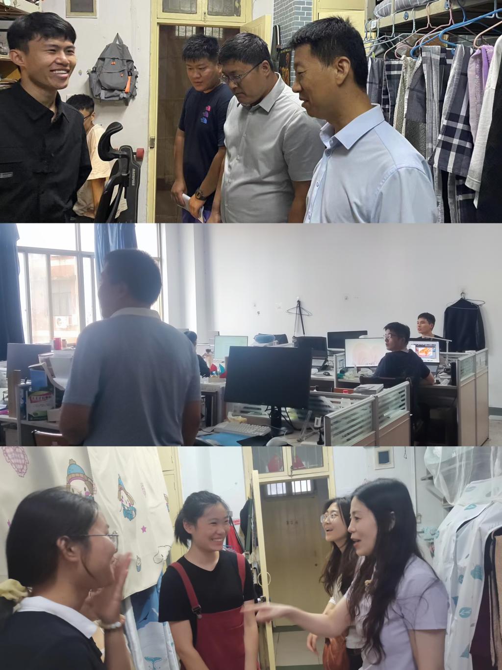 党委书记李怀珍、党委副书记邵水军、副院长杨玉中、李东印、刘少伟前往学生宿舍及研究生工作室看望已报到学生,对学生们进行新学期的慰问和关切。