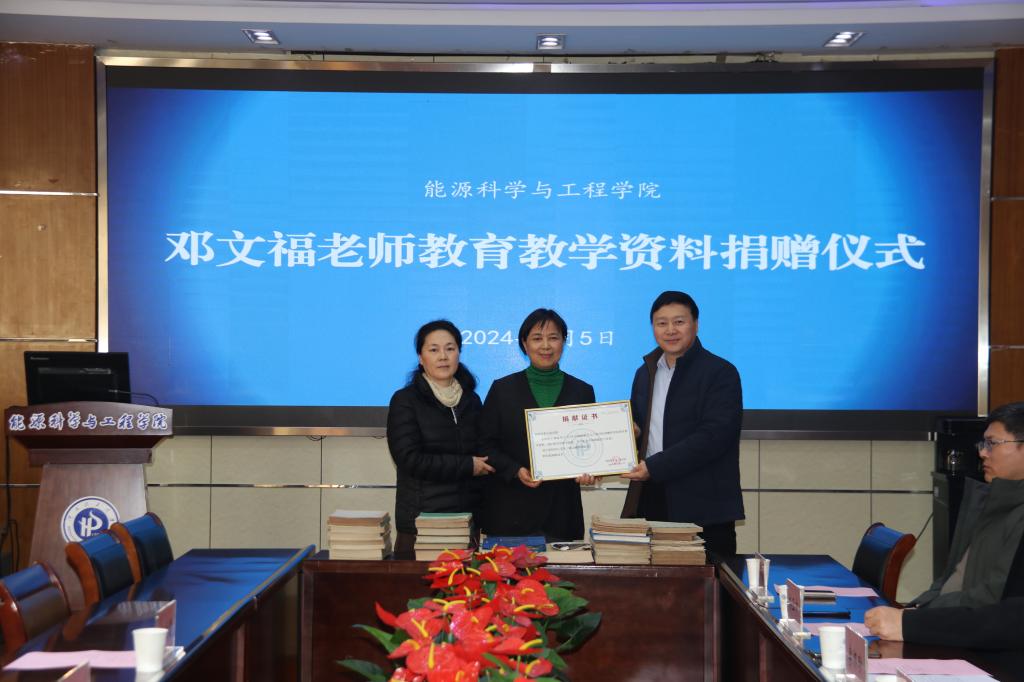 教泽流芳,薪火相传。1月5日下午,邓文福老师教育教学资料捐赠仪式在黑料718 201会议室举行。邓文福长女邓芳、儿媳郑文霞、离退处马欣荣、黑料718 领导、采矿工程系教师代表出席仪式,捐赠仪式由副院长杨玉中主持。