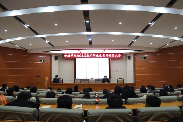 为做好采矿工程专业实习准备工作,引导学生做好实习前的各项准备,1月8日下午,采矿工程系在能源104学术报告厅举行2020级采矿工程本科毕业实习、设计(论文)动员会。副院长刘少伟、全体在校采矿工程系教师和2024届采矿工程专业全体本科生参加了本次会议,会议由智能采矿工程系主任王猛主持。