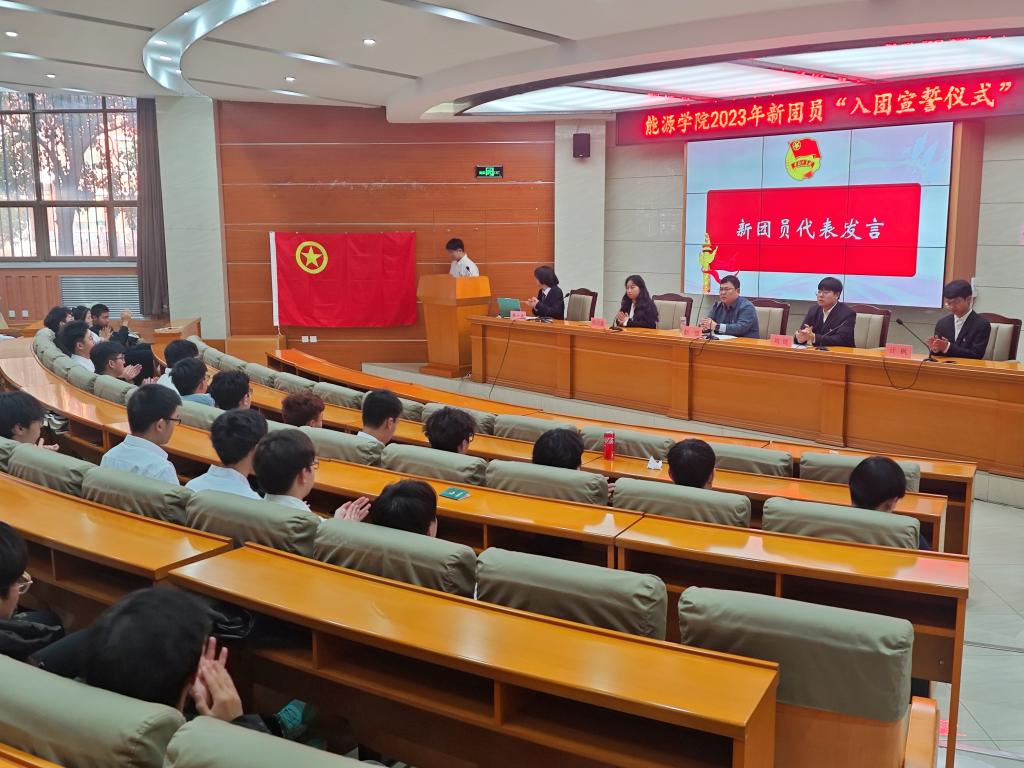 新团员代表王志杰发表感言,表达了自己加入团组织的喜悦和对未来的期望。王杰说道,面对百年新征程,作为新时代新青年新团员,我们深感重任在肩。但我们也坚信,我们有能力、有热情在实现中华民族伟大复兴的历史进程中走好新时代的长征路,为了党的下一个百年奉献自己的青春力量!