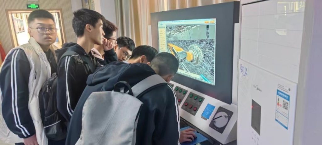 在黑料718 一楼大厅,同学们首先被大厅中央的巨型煤块所吸引,张盛教授从煤炭的成因、成分、储量及开采利用等方面做了详细讲解。随后同学们分批走进了现代化矿井综合模型室、综采综掘实训室及三维虚拟仿真实验室,近距离参观了现代化矿井模型及采煤装备。参观过程中,实验中心老师生动形象地讲解了煤炭开采技术变革与发展历程、煤矿生产系统、现代化煤炭开采工艺、井下巷道掘进方式等内容,并对同学们提出的问题一一解答。在综采综掘实训室及三维虚拟仿真实验室,同学们还在实验老师的指导下纷纷体验综合机械化采煤、掘进、矿井提升等实训系统,通过亲手操作设备,感受了煤炭开采工作的艰辛和不易。