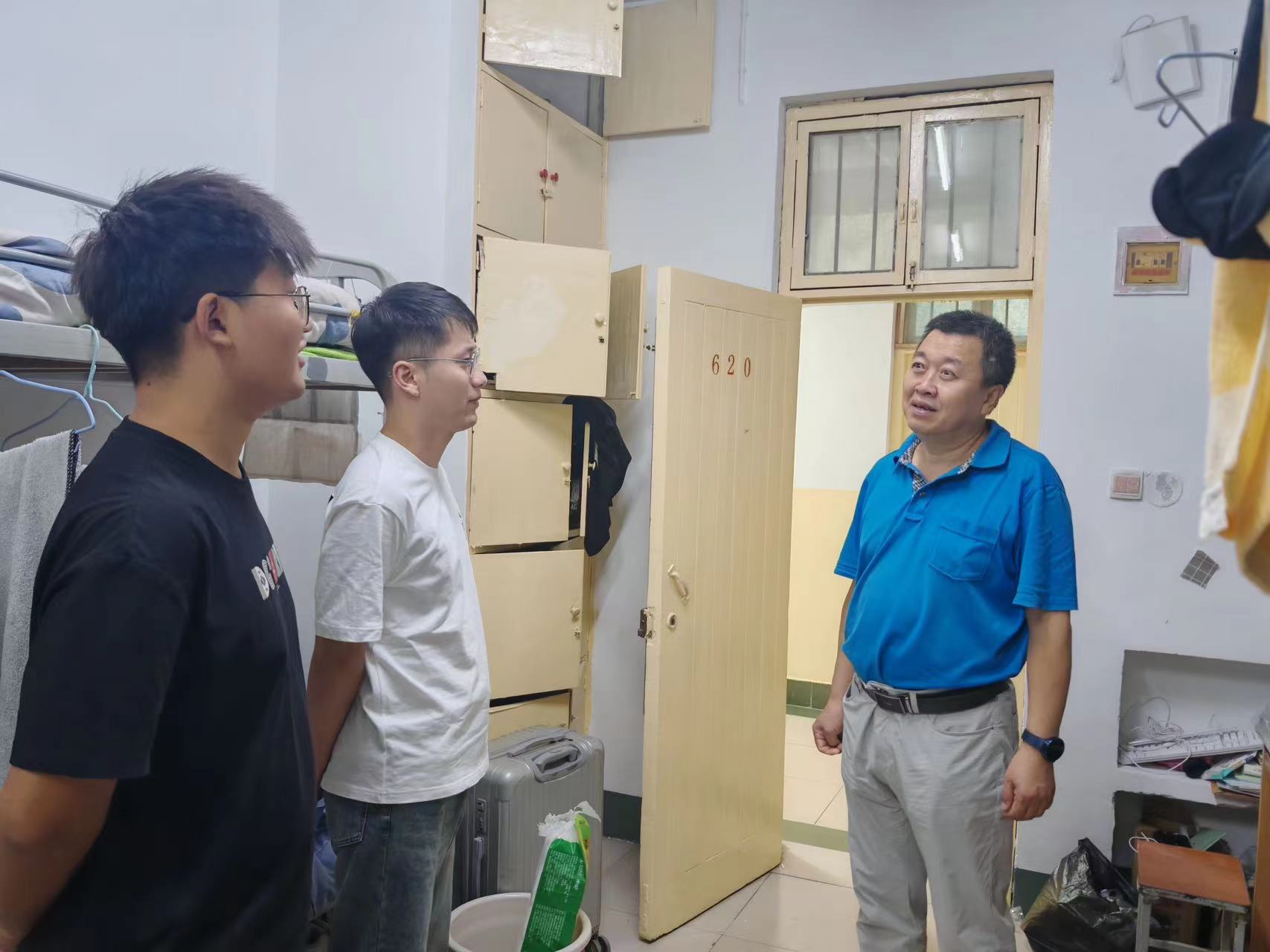 在走访过程中,院领导和老师细心观察着每一间宿舍的布置与卫生状况,对整洁有序的环境给予了高度评价。他们与新生围坐一起,以亲切友好的态度与新生展开交流,帮助新生尽快转变角色,适应大学的学习生活节奏。交流过程中,新生们也畅所欲言,表达了对未来学习生活的憧憬和期待。院党委书记李怀珍鼓励新同学珍惜大学时光,积极参与各类活动,拓展自己的视野与技能,同时也要注意个人与宿舍安全,共同营造一个温馨和谐的生活环境。同时,院领导和老师还详细询问了新生们的学习计划与目标,鼓励他们设定实际可行的目标并为之努力奋斗。他们每到一个宿舍都强调,大学是人生中一个重要的成长阶段,希望每位新生都能充分利用这段时间,不断提升自己,为未来的职业生涯打下坚实的基础。
