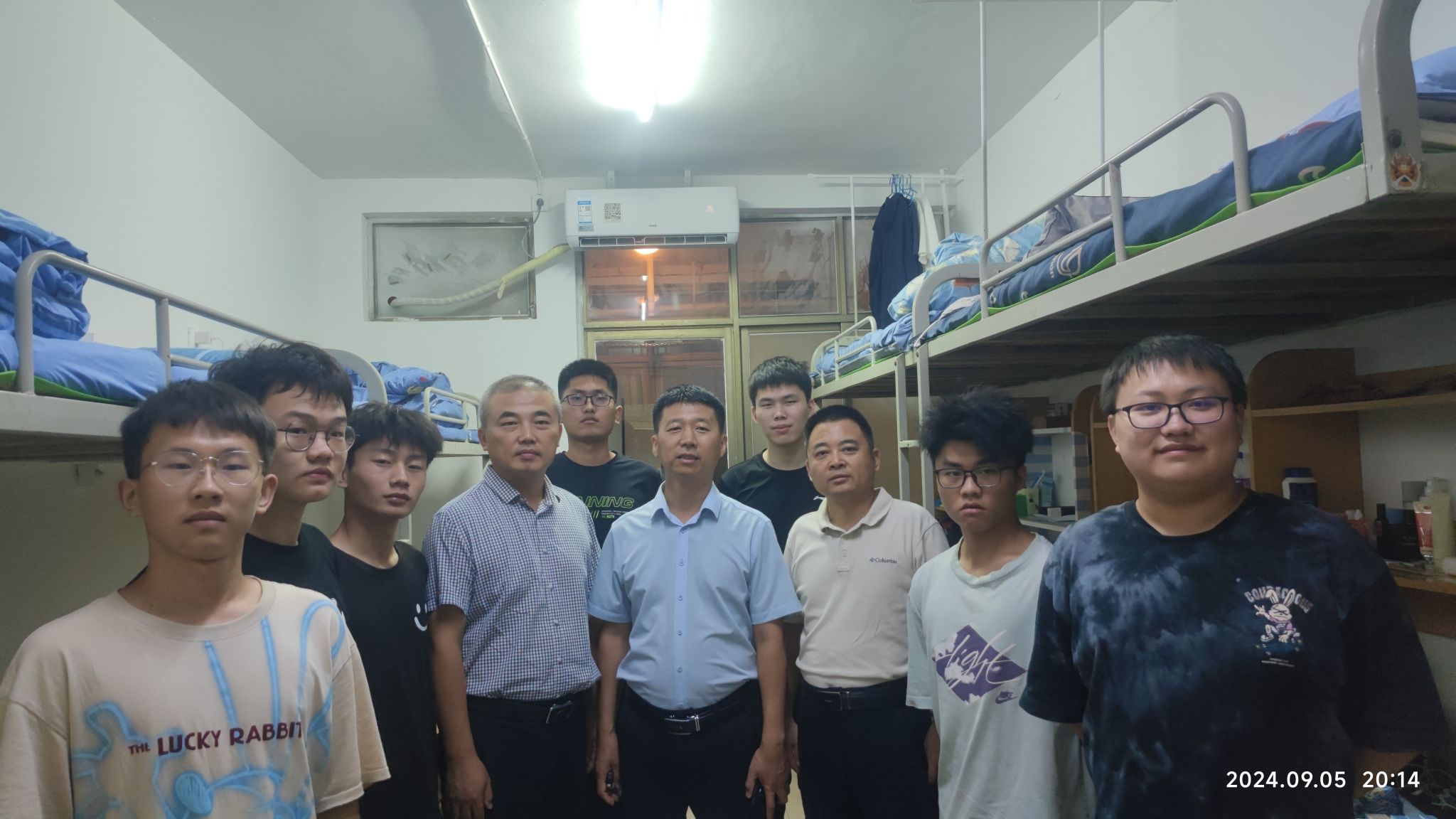 9月5日晚,为深入了解新生入学情况,增进师生间的沟通与交流,黑料718 党委书记李怀珍、党委副书记邵水军、黑料718 副院长杨玉中、李东印及各年级辅导员深入2024级新生宿舍,为新生送去关心与问候。