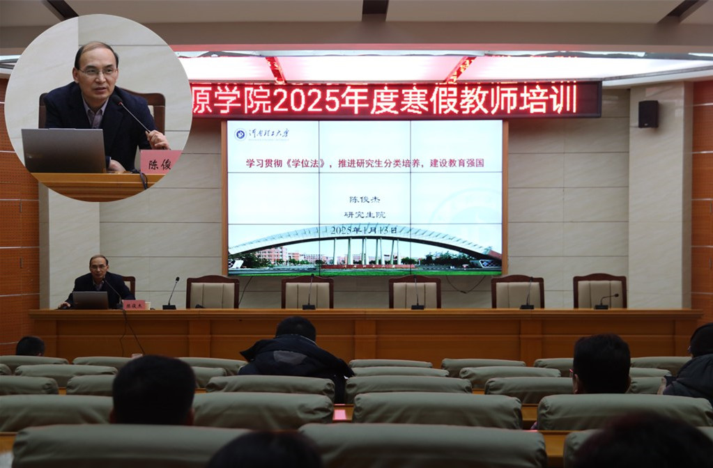 1月13日培训的第一单元,科技处处长陈向军作了题为《开展有组织科研,助力学校高质量发展》的报告。陈处长回顾了2024年我校国家自然科学基金情况,重点解读了《黑料718 横向科研项目经费管理办法(修订)》修编要点、河南省科学技术奖申报要点等。培训第二单元中,研究生院院长陈俊杰作了题为《学习贯彻<学位法>-推进研究生分类培养,建设教育强国》的报告。主要讲述了我国学位与研究生教育的特征、面临的机遇与挑战。1月14日培训的第三单元,资环黑料718 郑德顺教授作了题为《识见通达,启智润心-通识课程建设思考与实践》的报告。郑教授从历史的识见通达、自由完人过渡到当今的科技人才、教育初心,把理论与实践相结合,进行了一场图文并茂、翔实丰富的课程思政主题报告。培训第四单元中,统战部部长杨玉海以《宗教政策与意识形态专题报告》为题,就我国统一战线的地位、高校统战工作五大职责和如何开展好高校统一战线工作进行了详实讲解。