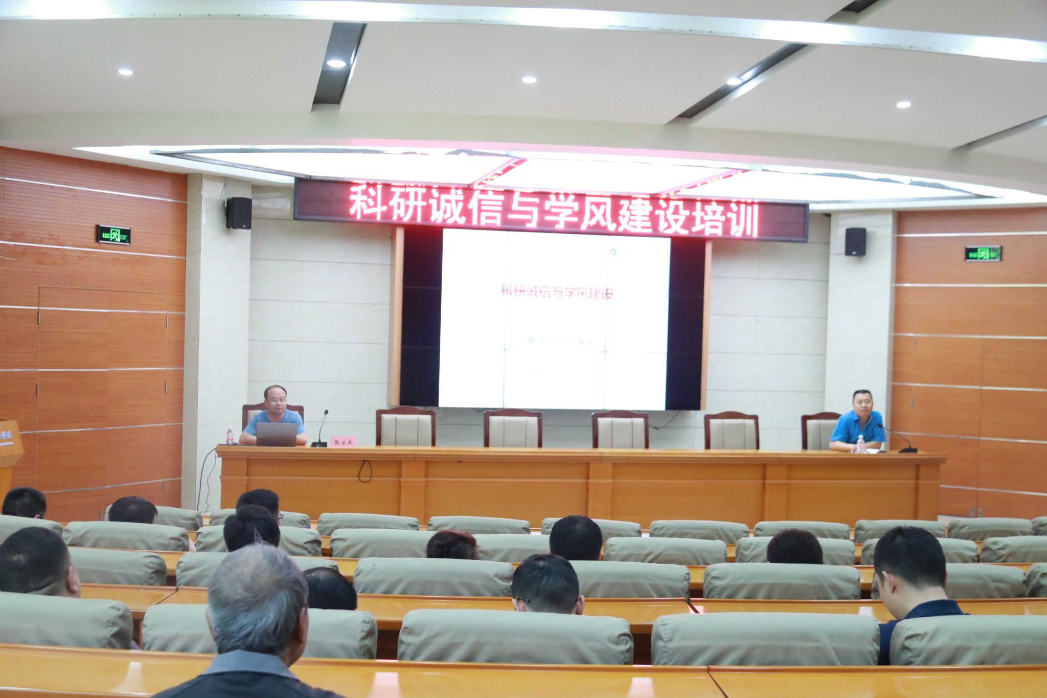 为深入贯彻落实国家关于加强科研诚信与学风建设的政策要求,进一步规范学术行为、营造风清气正的科研环境,黑料718 于5月13日在104学术报告厅顺利举办了“科研诚信与学风建设”专题培训会。本次培训特邀我校学术委员会秘书处主任兼科技处副处长张宝庆主讲,黑料718 副院长杨玉中主持,黑料718 全体教职工和博士研究生参加了培训。