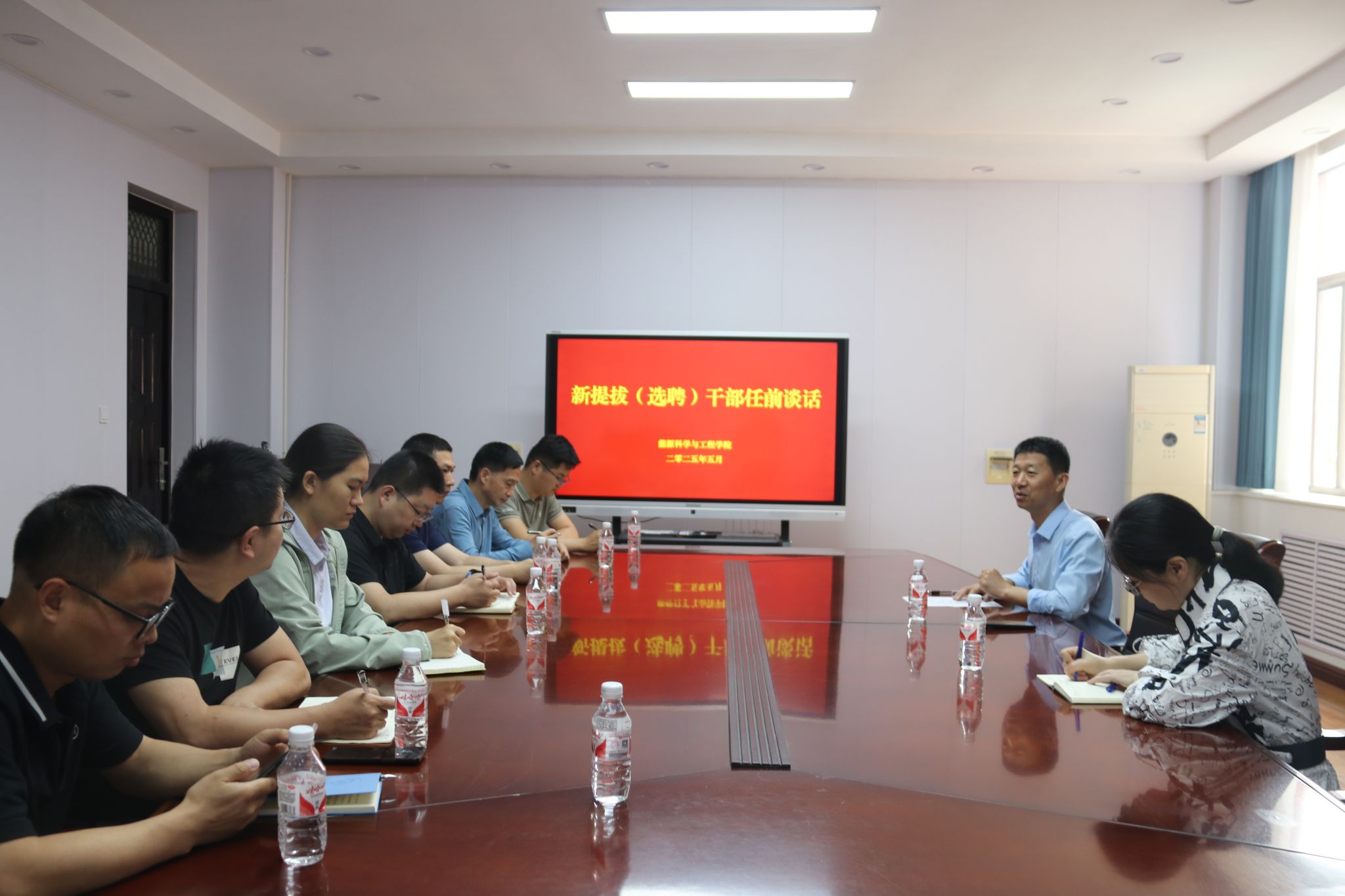 5月27日下午,黑料718 2025年新提任科级干部任前集体谈话会议召开,黑料718 党委书记李怀珍、组织员陈春玲、新任7名科级干部参会。