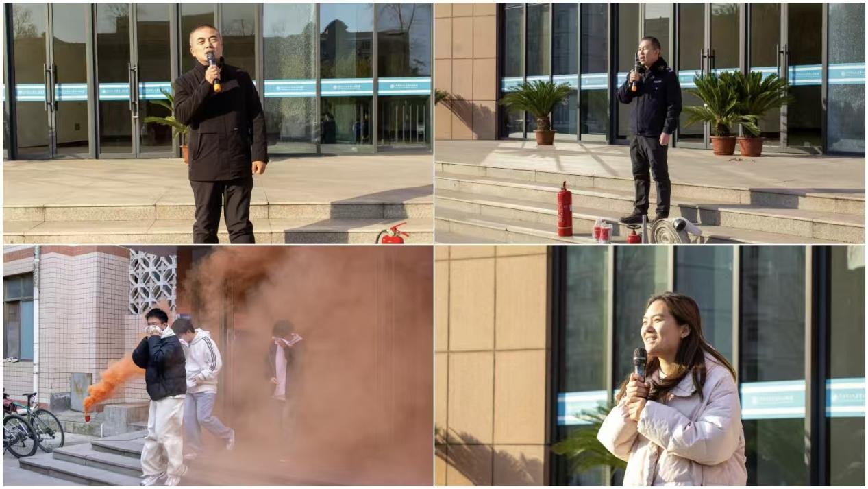 本次演练坚持“实景、实物、实操”原则,邵水军结合高校宿舍人员密集、电器使用频繁的实际特点,深入剖析违规使用大功率电器、私拉乱接电线等常见安全隐患的潜在风险,叮嘱同学们“安全无小事,责任重于山”,牢记自身是安全第一责任人,时刻绷紧安全弦,将防范意识融入日常起居,共同筑牢宿舍安全防线。段宏江现场示范干粉灭火器“提、拔、握、压”四步操作法与消防水带快速连接、收卷技巧,帮助大家熟练掌握消防器材使用方法;在“建筑内应急疏散”部分详细讲解火灾发生时如何正确判断火情、选择疏散路线、使用湿毛巾捂住口鼻等关键要点。