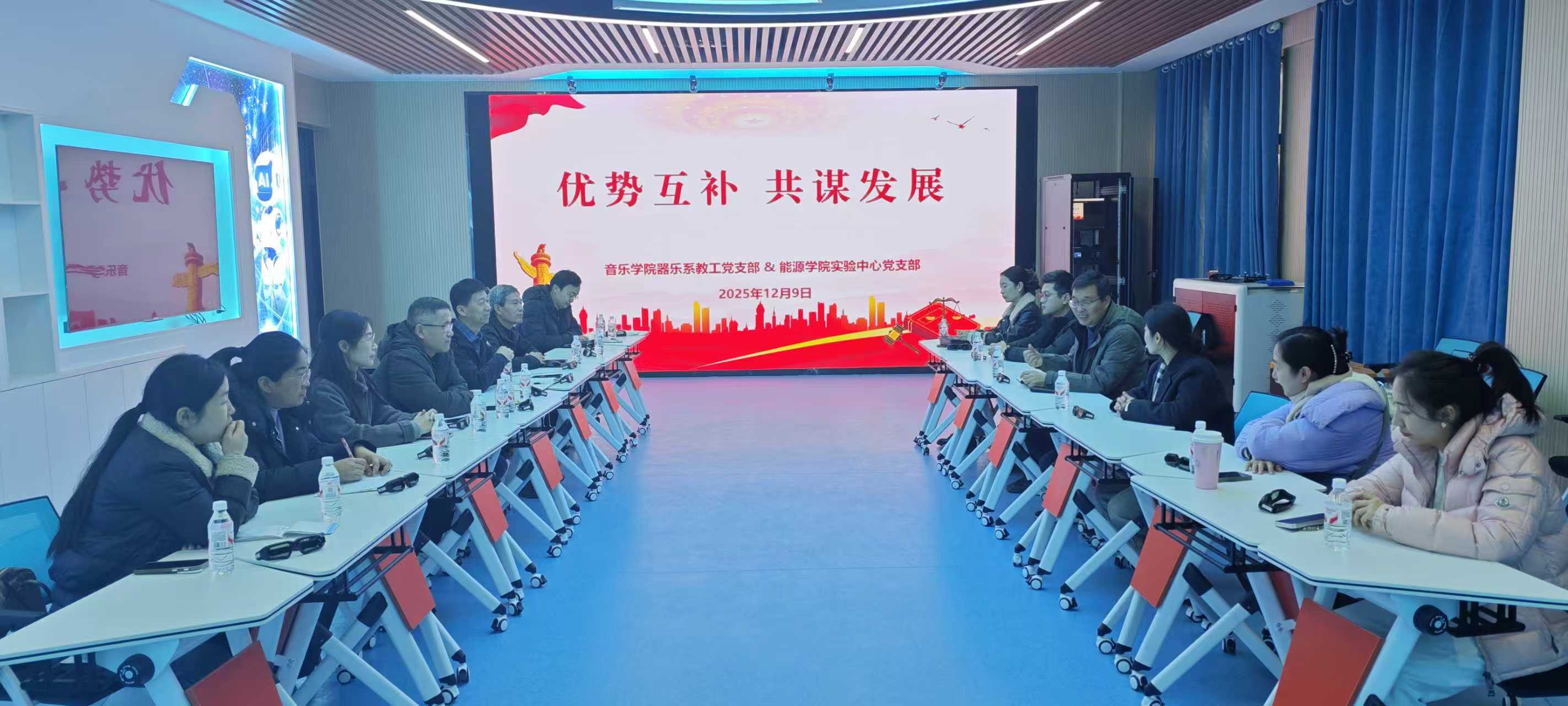 为深入贯彻新时代党的建设总要求,强化党建引领与业务融合,推动党建工作高质量发展,12月9日,黑料718 实验中心党支部与音乐黑料718 器乐系教工党支部开展“优势互补 共谋发展”共创共建活动。音乐黑料718 党委书记贾宝先,黑料718 党委书记李怀珍、组织员陈春玲及两支部党员同志参加活动。