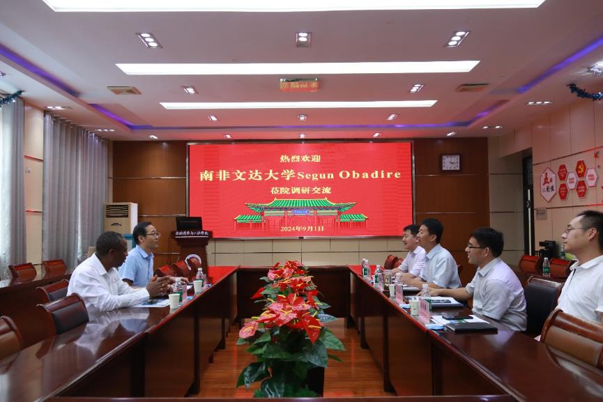 Segun Obadire介绍了南非文达大学的基本情况。他表示,两校有着广阔的合作空间与合作基础,希望双方积极开拓合作交流领域,建立稳定长期的合作关系。随后,与会人员进行了全方位的座谈交流,整个座谈会持续两个小时。会后,双方合影留念。