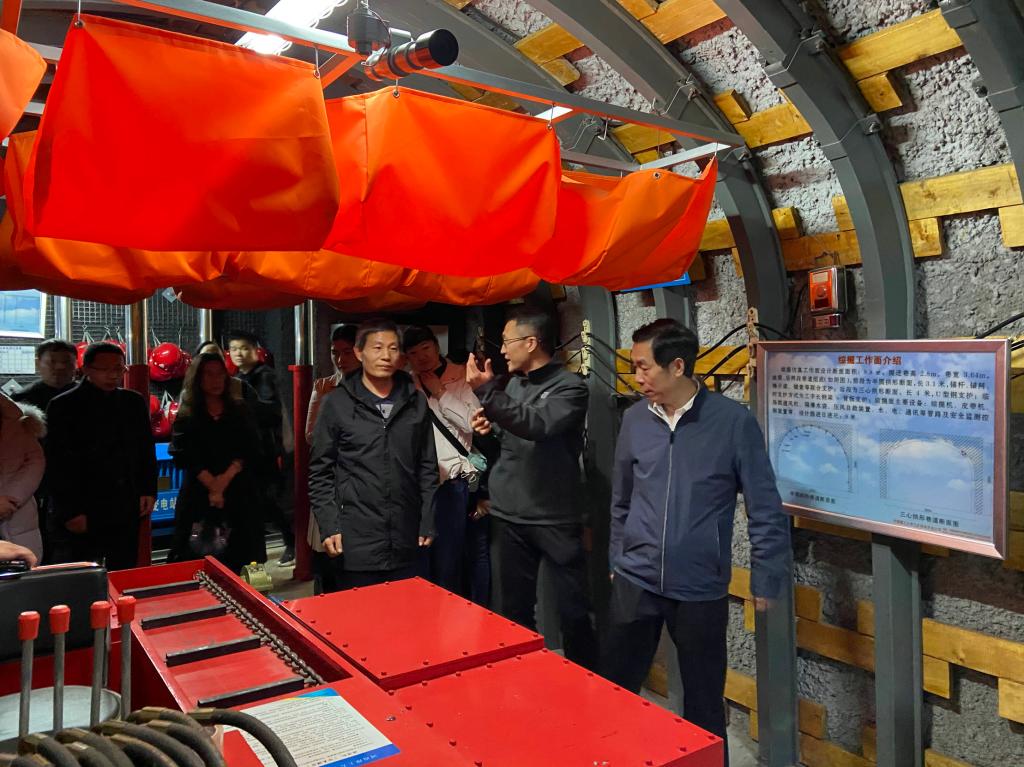 校史馆是“知校,爱校,兴校,强校”的重要基地和对外交流窗口。学员通过图文展板和珍贵文物了解到我校的百年发展历史,对学校的办学成就和办学精神表示由衷敬佩。地球科学馆内收藏了大量珍贵的天然实物标本,展示了地球的构造组成、自身资源及气候环境的发展演变,让学员们认识到了人与地球和谐相处的重要性。在参观我院实验中心的过程中,康全玉在黑料718 历史浮雕墙前简要介绍了黑料718 的历史沿革和发展近况。随后,在黑料718 实验中心张盛引领下,学员们先后参观了现代化矿井模型实验室、综采综掘实验室、国家煤矿开采虚拟仿真实验教学中心等实验室。通过煤矿开采系统演示、井下虚拟漫游及井下工作面设备实操,让学员们深切体会到了科学技术是第一生产力及煤矿工人甘于奉献、特别能战斗的精神。