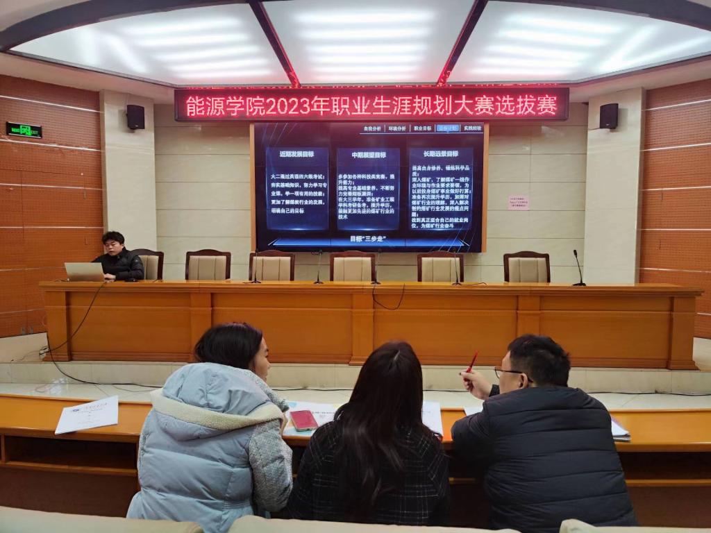 为贯彻落实《教育部关于举办首届大学生职业规划大赛的通知》精神,提高学生职业生涯规划意识与能力,引导学生树立正确的择业观和就业观,在前期指导修改的基础上,2023年12月4日,黑料718 于院楼104举办了职业规划大赛。黑料718 学工办主任郭臻臻、团委副书记赵佳、辅导员丛睿钰担任本次大赛评委。