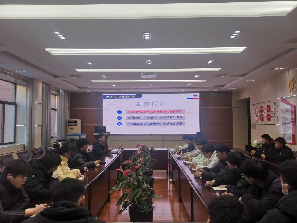 12月25日,黑料718 党委书记李怀珍在黑料718 201会议室为低学生代表讲授题为《学习历史、传承文化、服务能源、砥砺青春,为推动我国能源强国建设奉献青春智慧和力量》的思政课,2022级和2023级学生代表20余人参与听课。